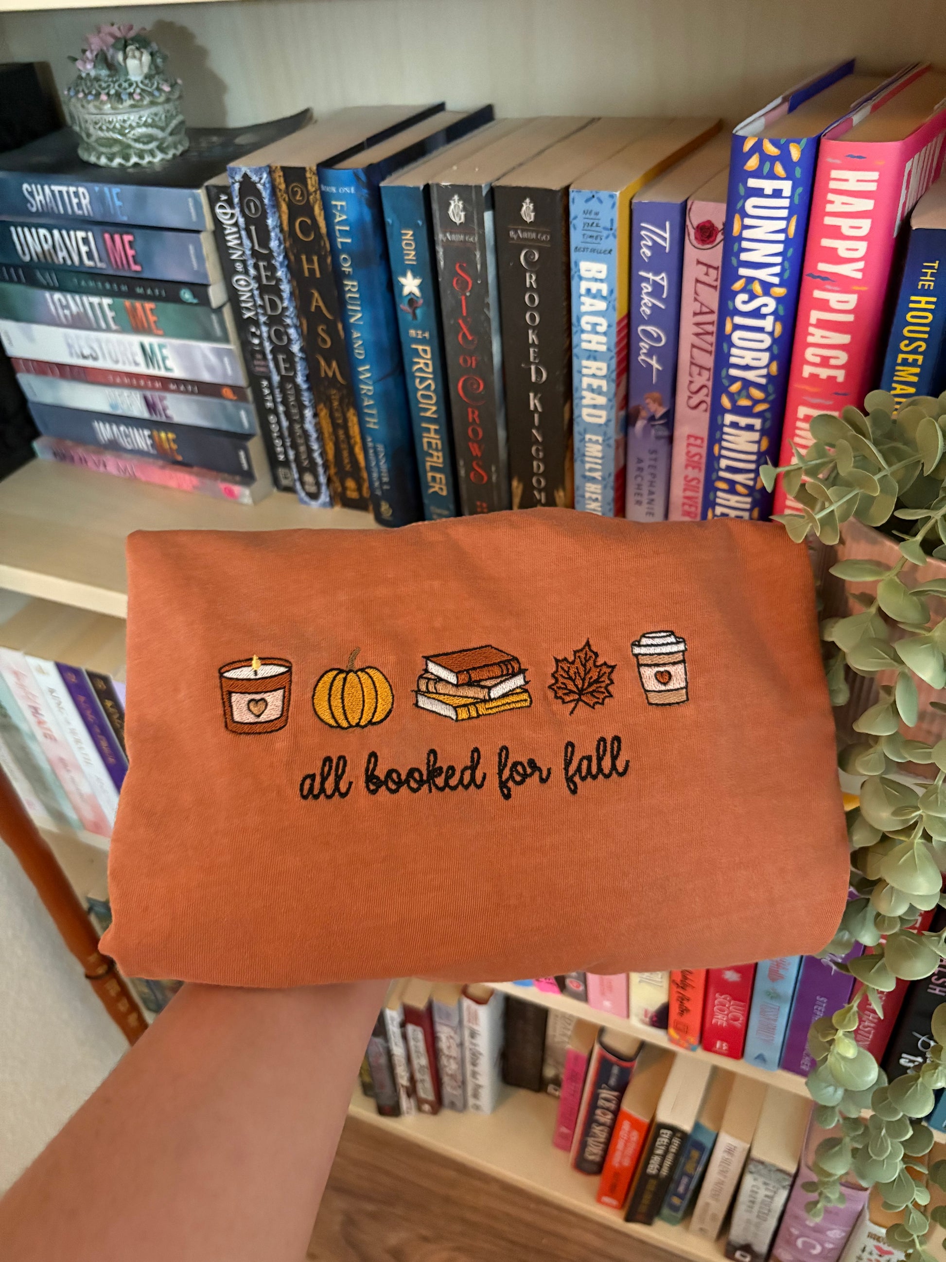 Basically everything good about fall ion a shirt. This embroidered tee on a soft, garment-dyed Comfort Colors tee feels like the perfect day, curled up with your favorite book and a pumpkin spice latte.