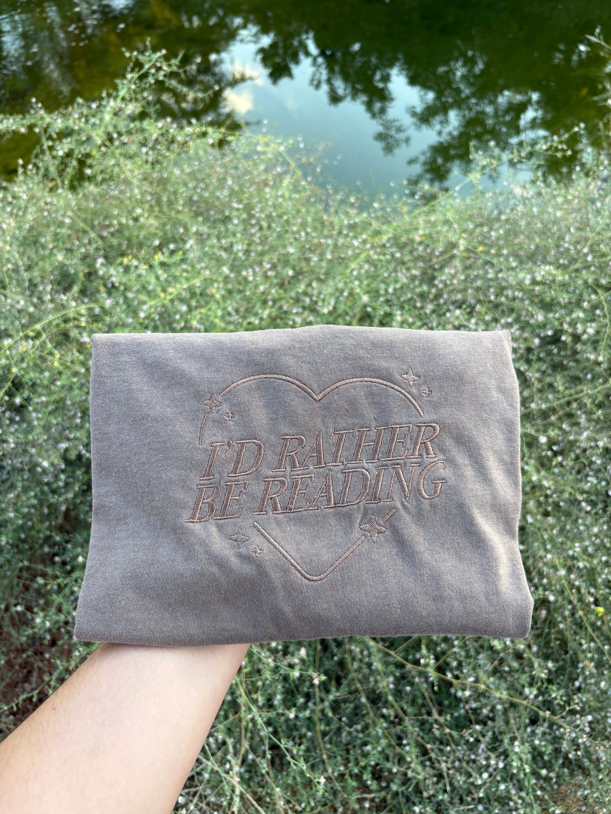 For anyone who’d pick a good book over… pretty much anything else. The monochrome embroidery keeps it simple, and the soft, garment-dyed Comfort Colors tee makes it feel like an old favorite right away. Perfect for bookstore dates or lazy reading days.