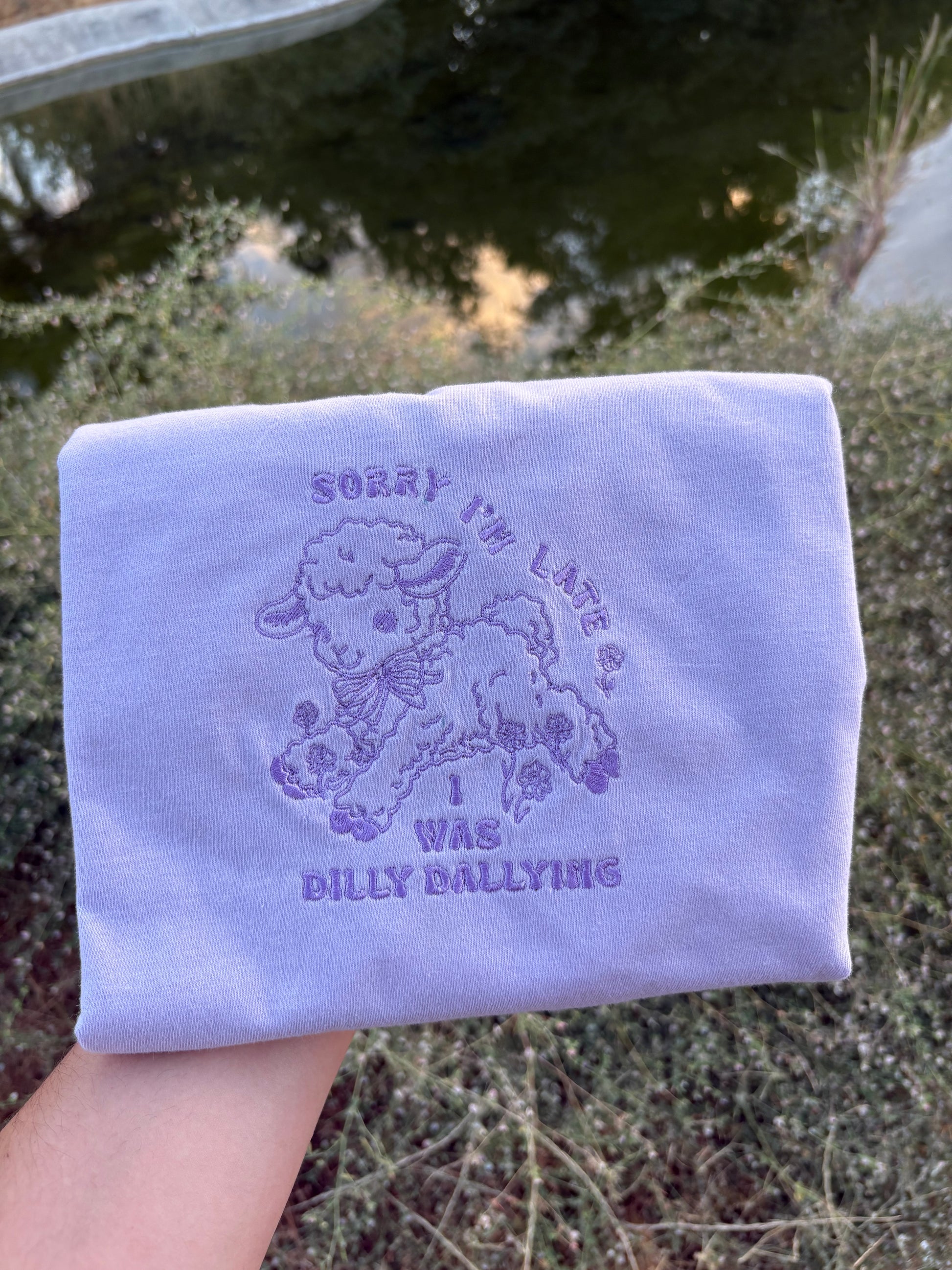 For the friends who always show up a few minutes behind schedule (but make it adorable). This sweet little lamb and cheeky phrase are stitched on a soft, garment-dyed Comfort Colors tee with matching thread that feels perfectly worn-in from the start. Great for any time you’re fashionably late.
